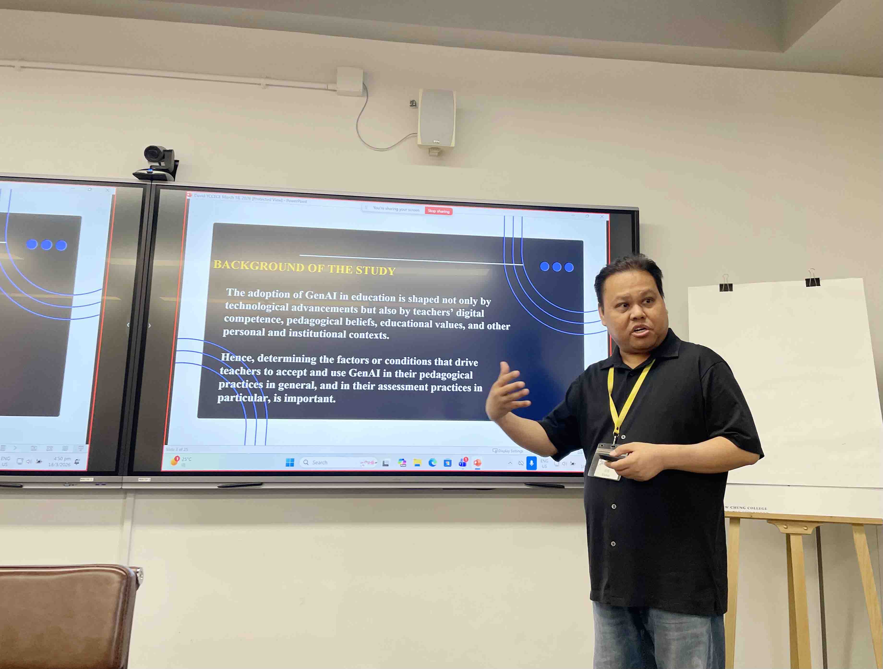 第二场环节由Prof. Adonis P. David分享一项进行中的研究,探讨菲律宾教师在不同情境中(包括职前教师、在职教师及高等教育)于课堂评估中采用生成式人工智能的情况。该研究以(TAM)及科技接受与使用统一理论(UTAUT)为理论框架,旨在分析影响教师对生成式人工智能工具的态度、使用意愿及实际应用的因素。